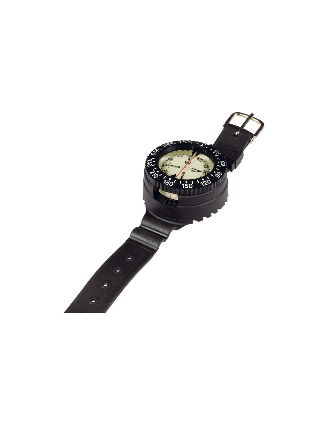 MISSION 1C wrist compass designed for both front and side reading, featuring scratch-resistant polycarbonate protection. Soft, ergonomic strap made from high-resistance technopolymer.