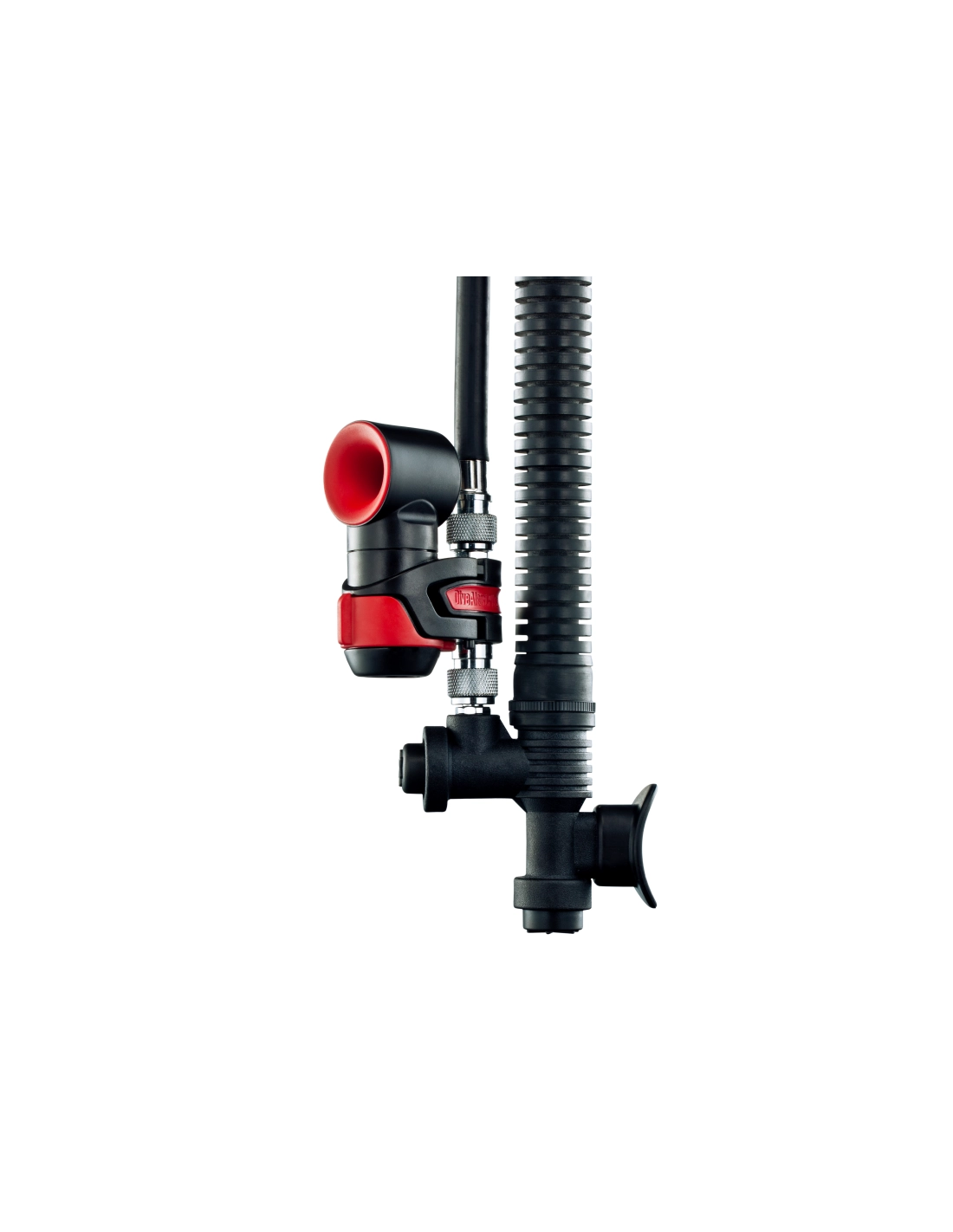 O DiveAlert utiliza acoplamentos em latão cromado para se ligar ao insuflador de potência. Ao pressionar o botão ativador, é acionada uma válvula também em latão cromado, permitindo que uma pequena quantidade de ar passe por um diafragma de aço inoxidável, emitindo um som extremamente alto a partir do corpo em termoplástico moldado por injeção.