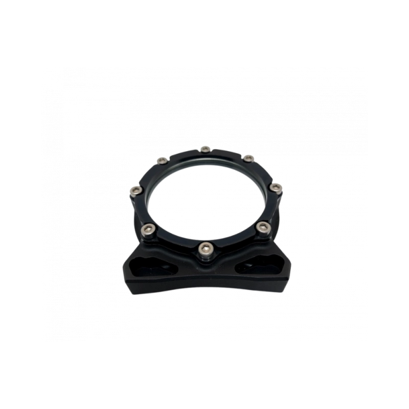Fabricado em alumínio anodizado T6082, está disponível em 8 cores e é fixado por um elástico de 4 mm.