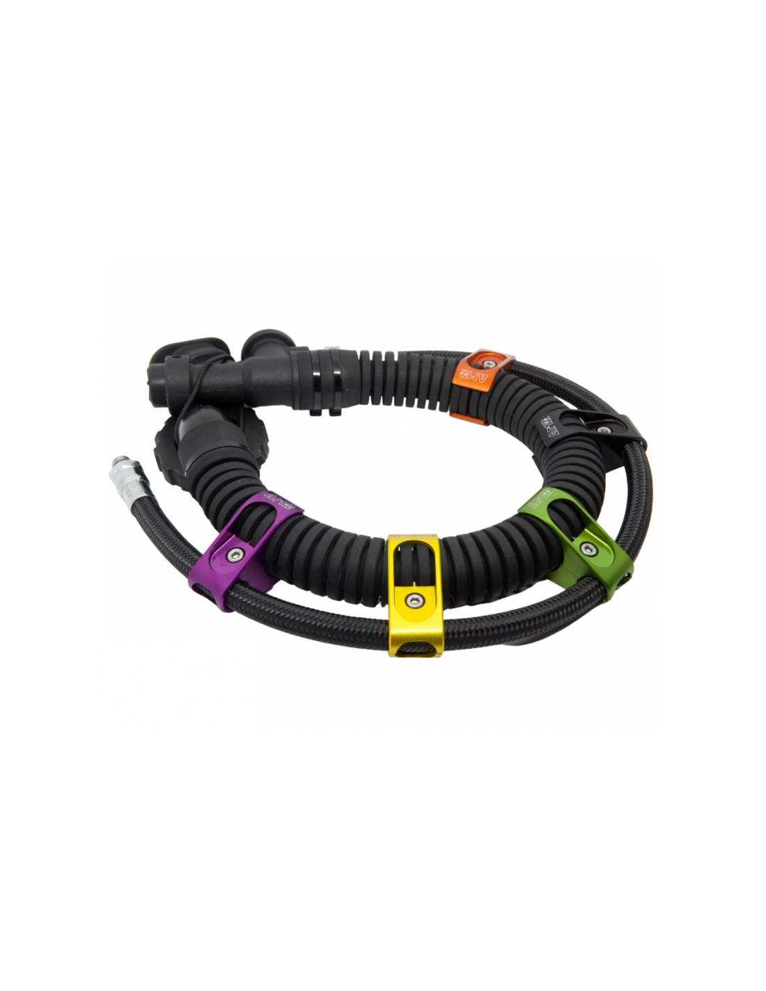 O R-CLIP da AMX-TEKnology foi especialmente concebido para simplificar o encaminhamento do inflador (mangueira do sistema direto) nas asas (wings) utilizadas em configurações técnicas (tek). A sua construção em duas peças de alumínio T6082 oferece simultaneamente leveza e robustez.