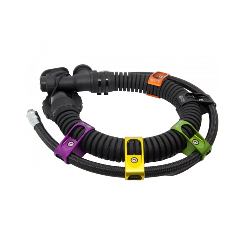 O R-CLIP da AMX-TEKnology foi especialmente concebido para simplificar o encaminhamento do inflador (mangueira do sistema direto) nas asas (wings) utilizadas em configurações técnicas (tek). A sua construção em duas peças de alumínio T6082 oferece simultaneamente leveza e robustez.