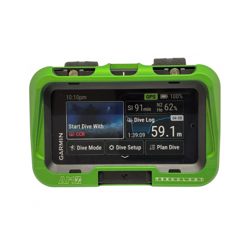 A proteção AMX-TEKnology para o computador de mergulho Garmin X50i oferece uma defesa de ponta contra os elementos. Este sistema é resistente a choques, garantindo a segurança do seu computador nos ambientes subaquáticos mais exigentes. O seu design robusto e a anodização asseguram durabilidade máxima. Com a AMX-TEKnology, mergulhe com total tranquilidade, sabendo que o seu equipamento está protegido.