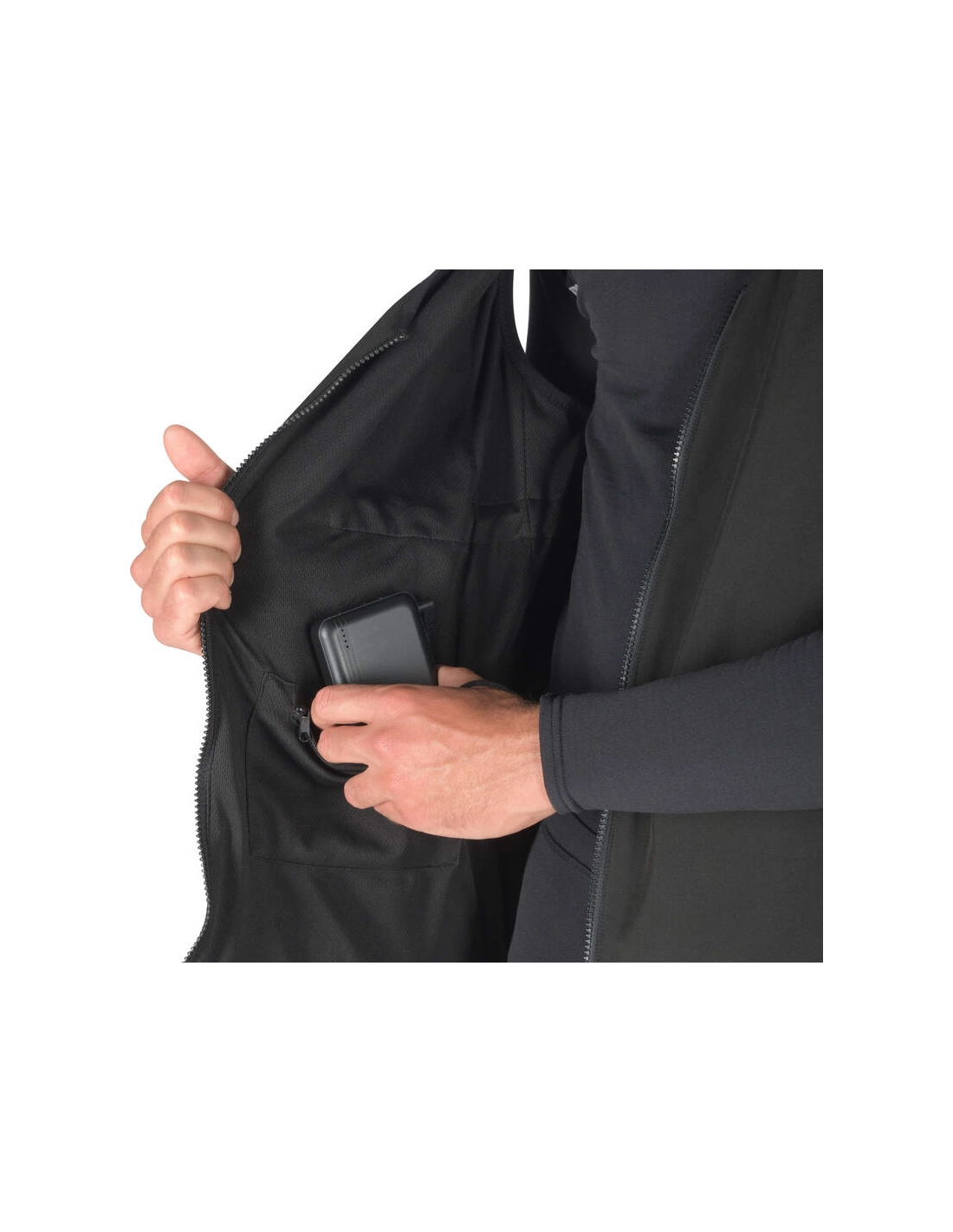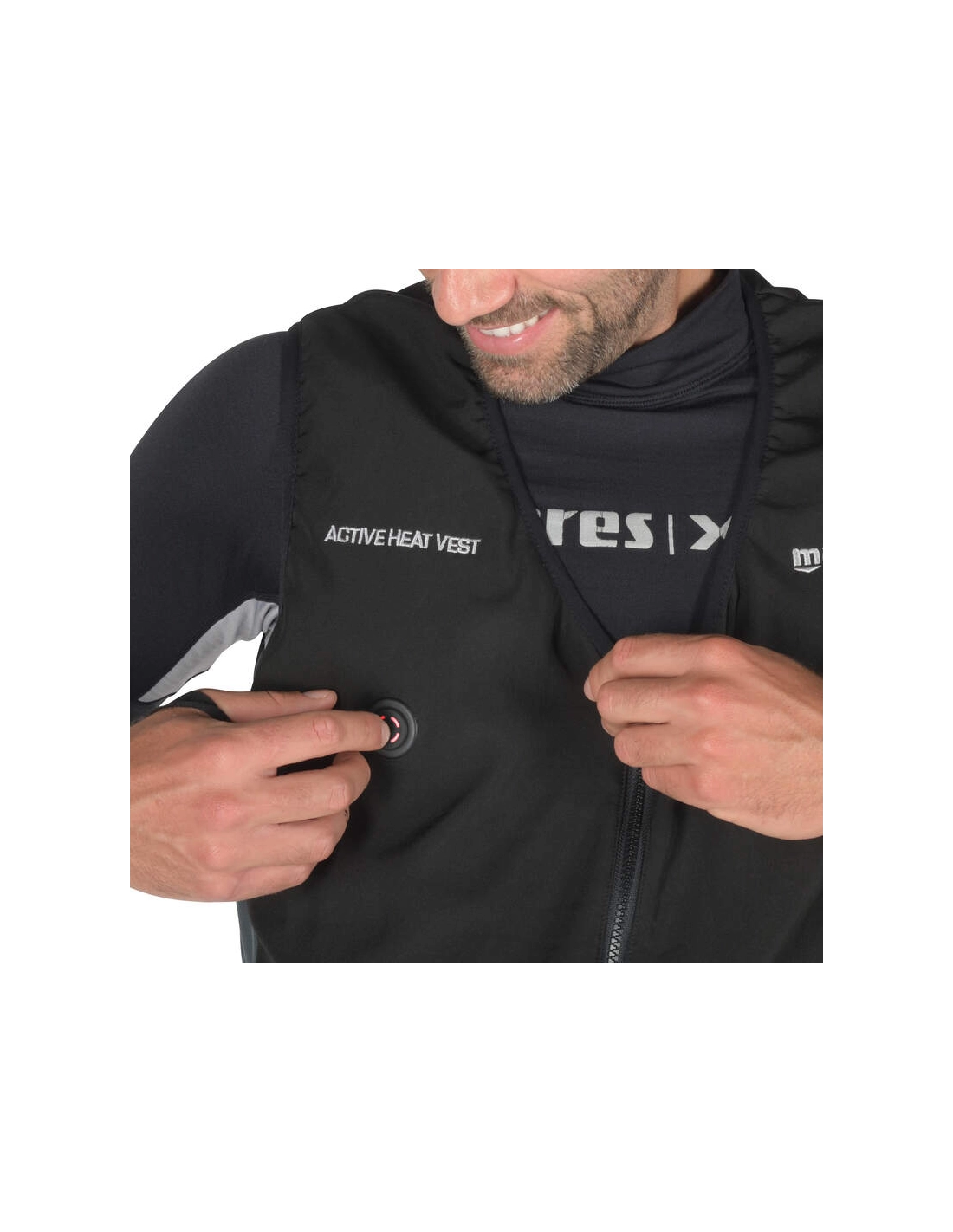Os níveis de aquecimento podem ser ativados através do botão externo, mesmo com o fato seco vestido. O sistema distribui o calor pela zona das costas/rins e por ambos os lados do peito, proporcionando uma sensação de aquecimento equilibrada e completa.