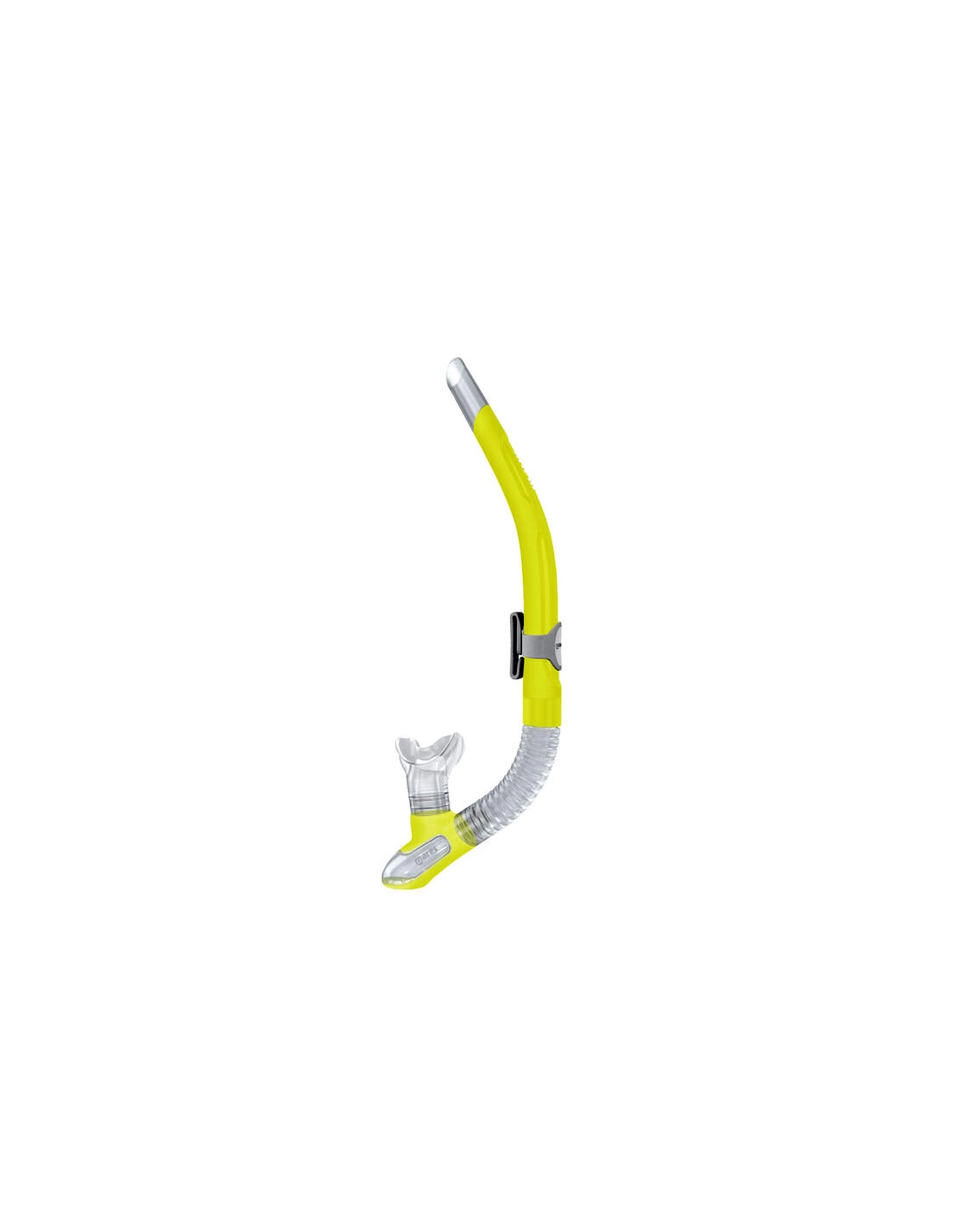 O tubo Ergo Flex possui um tubo corrugado em silicone transparente e um bocal em silicone. O bocal é amplo e permite respirar com facilidade. É perfeito para sessões prolongadas de mergulho ou snorkeling. Está equipado com válvula de purga.