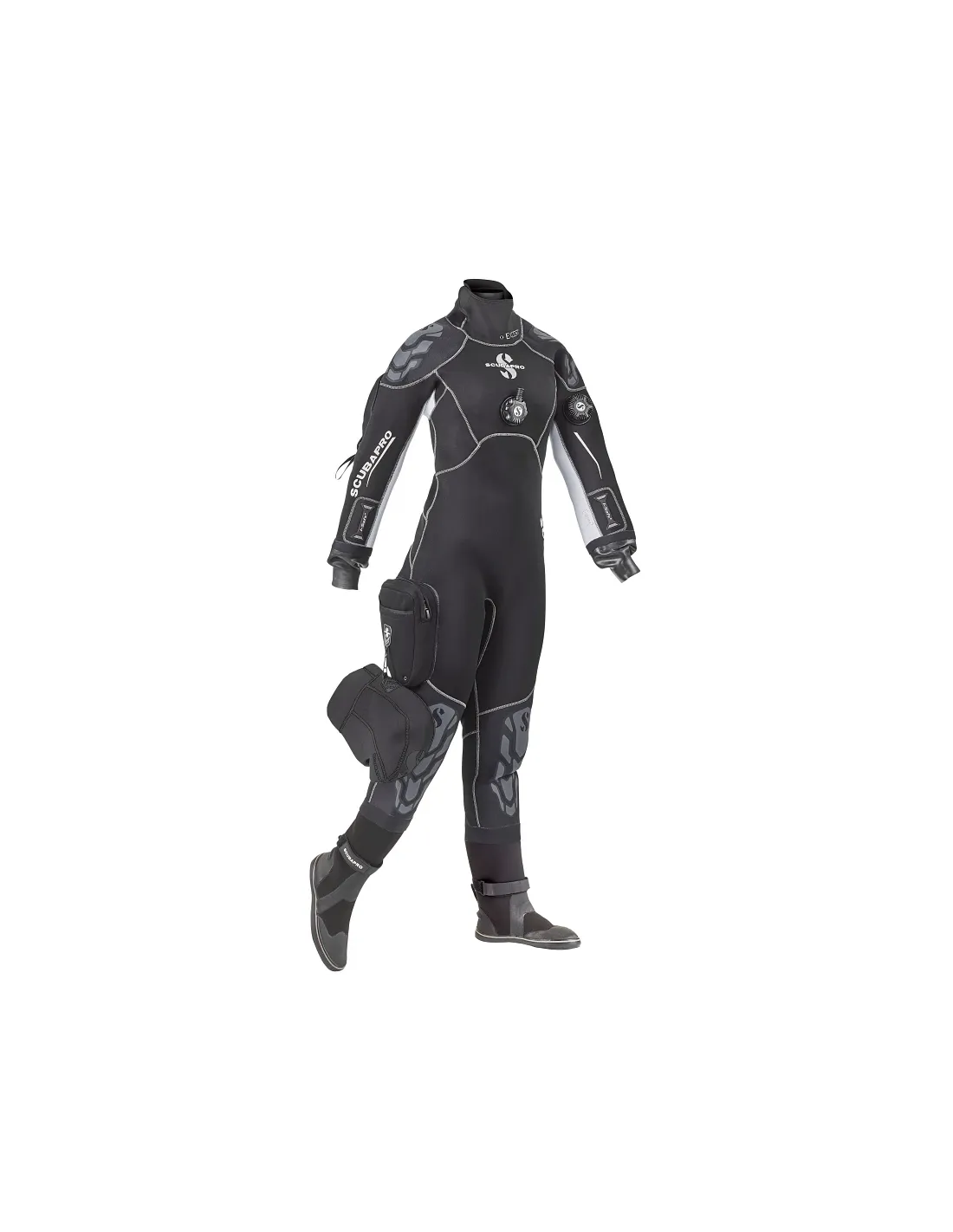 The premium-plus Exodry offers a unique approach to drysuit design by fusing 4 mm high-density neoprene with latex wrist and neck seals. This hybrid design is extremely effective, delivering minimal inherent buoyancy, maximum range of motion, and an excellent sealing system. This comfortable suit includes protective shoulder and knee panels, a plush interior lining, blue-style suspenders, and much more. For 2019, updated semi-rigid dive boots feature new soft yet protective soles and include fin strap retainers and Velcro straps to improve fit while preventing air from shifting when diving in the head-down position. The Exodry is a smart choice for all types of diving and can be used with or without an undersuit.