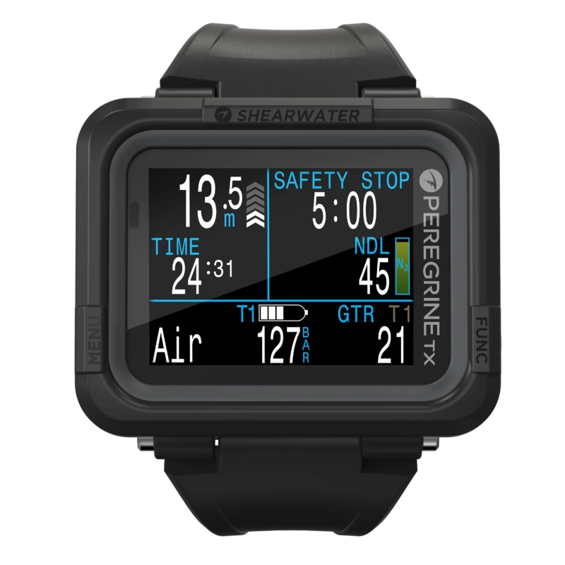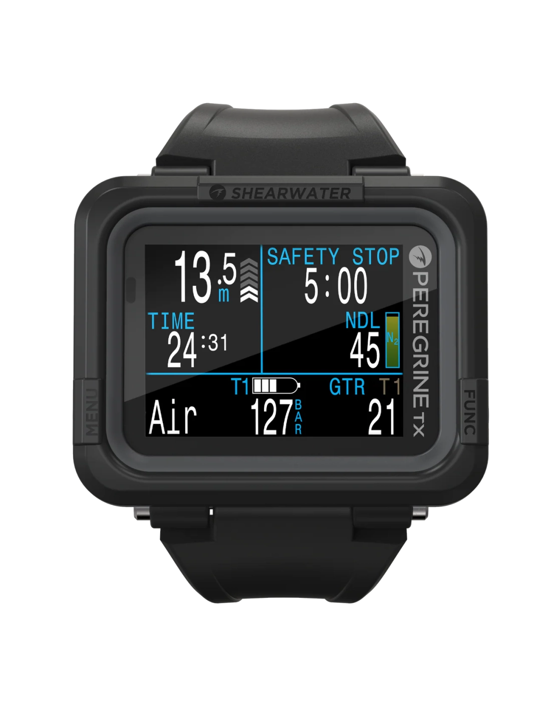 The Peregrine TX combines the beloved Peregrine’s large, user-friendly interface with core features from our flagship model, the Perdix 2 – including air integration and a digital compass. Designed for recreational divers, the Peregrine TX delivers the renowned Shearwater experience at exceptional value.