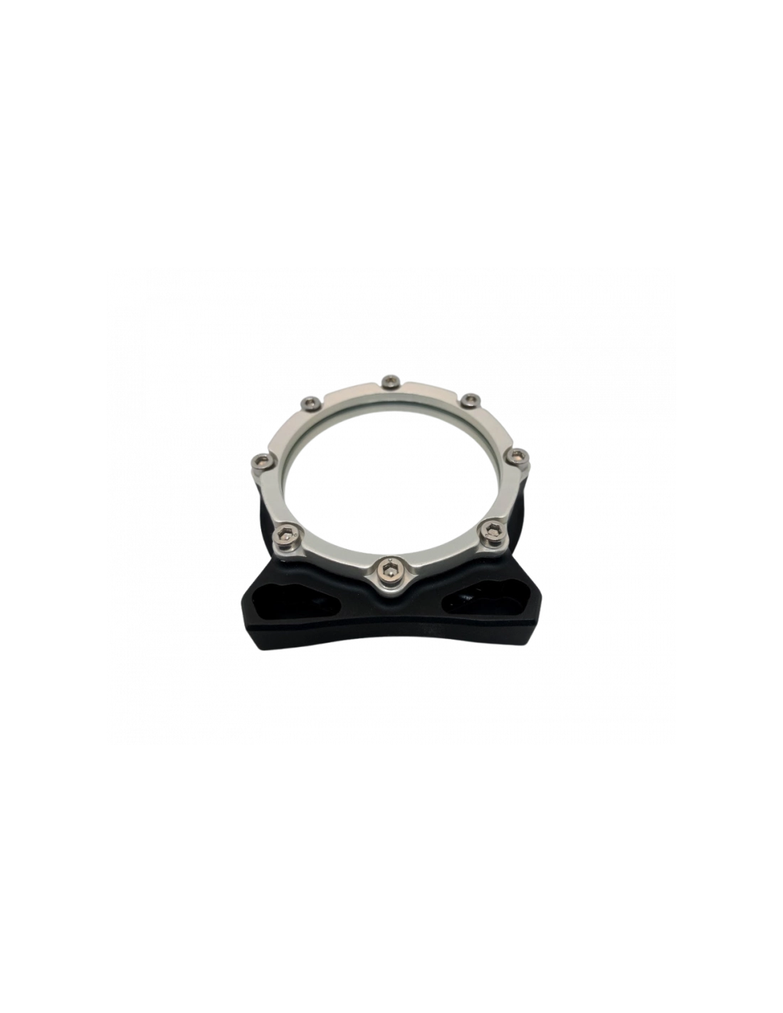 Made from anodized T6082 aluminum, it is available in 8 colors and secured with a 4 mm elastic strap.