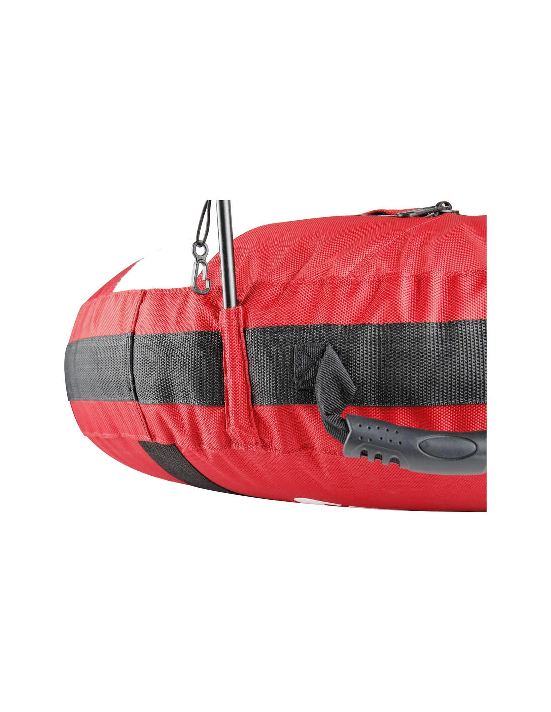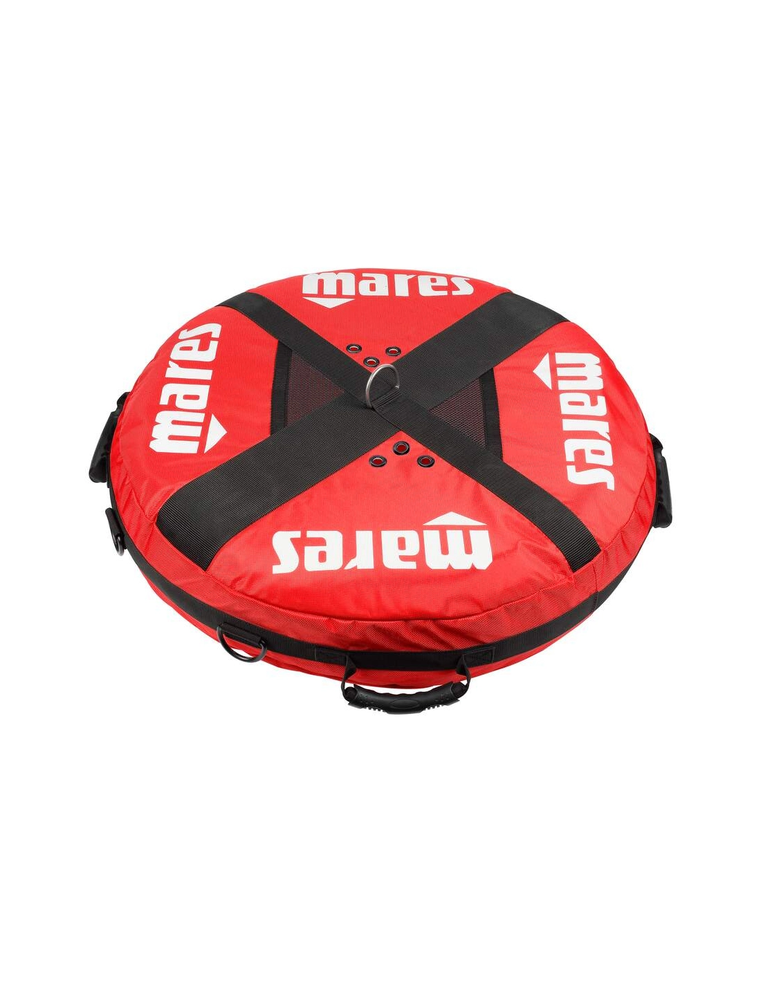 The Mares Training Buoy Pro is designed to support freediving training sessions with stability, visibility, and practical organization. Four external handles provide a comfortable grip during pre-dive preparation. The spacious internal compartment accommodates the line during transport, while an external zip pocket keeps accessories secure. A large 2-way valve allows quick inflation and deflation. The stainless steel D-ring ensures secure attachment of the freediving line, and bottom drainage holes prevent water accumulation. Two dive flags, an adjustable flagpole, and a carry backpack are included for complete functionality.