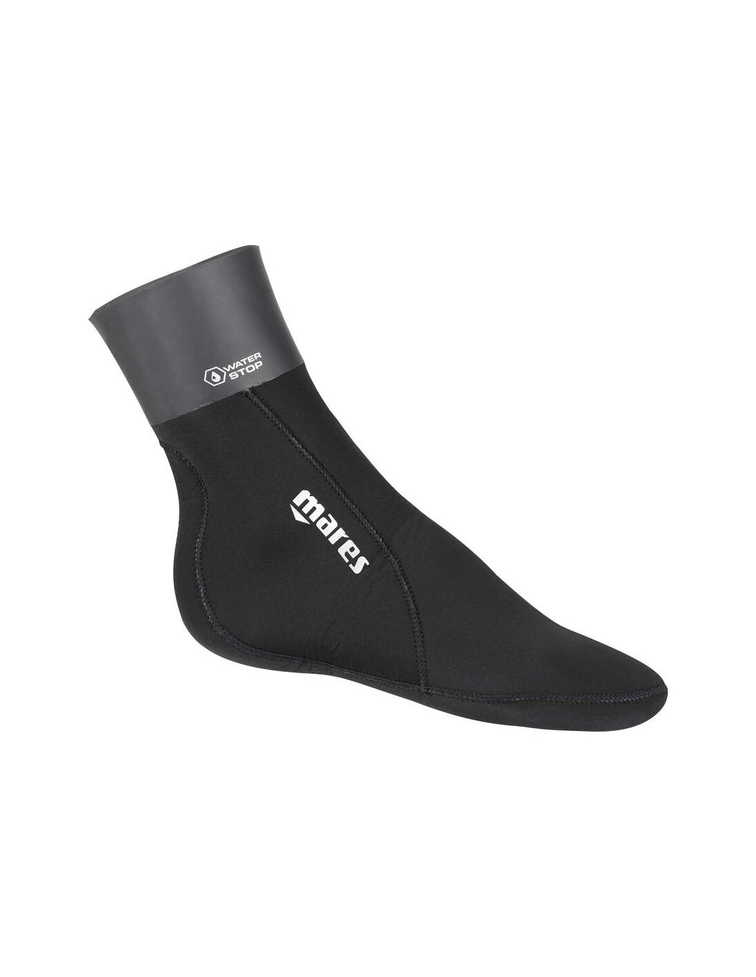 The Black 50/60 freediving socks are made from neoprene with differentiated thickness: 5 mm on the sole for a secure fin fit and 6 mm on the top for better compatibility with wetsuit pants. The varied thickness helps block water entry.