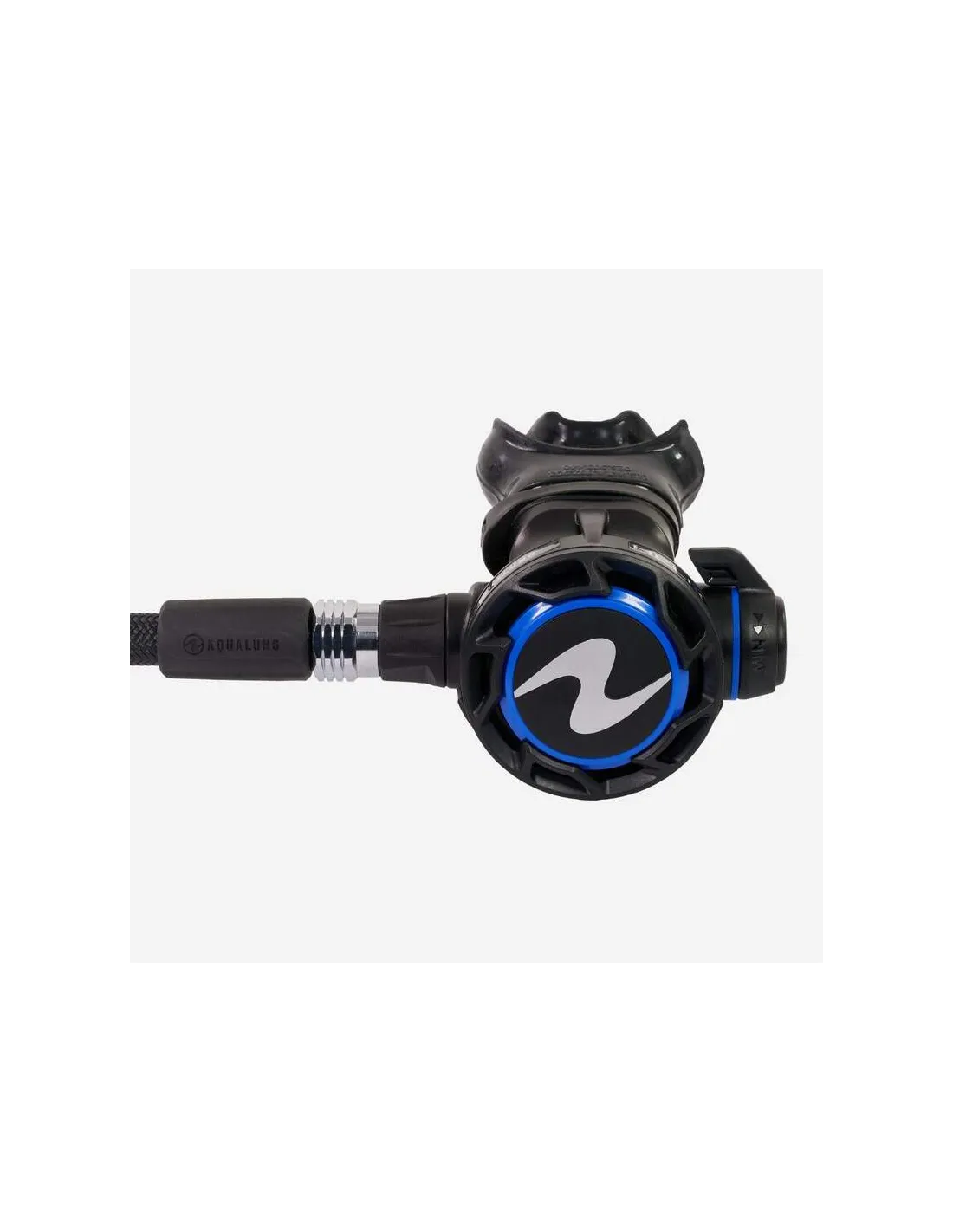 • ASSENTO DE ALTA PRESSÃO AZUL – O núcleo do primeiro estágio. Abre e fecha a cada respiração, garantindo uma vedação perfeita com materiais duráveis adequados a todas as condições e gases. A pressão de funcionamento é automaticamente aumentada para compensar a maior densidade do ar respirável.