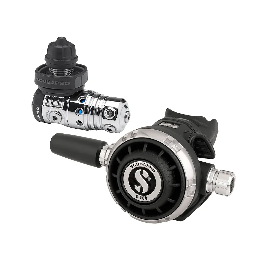 O sistema de regulador SCUBAPRO MK25 EVO BT/G260 Carbon BT é uma evolução do conjunto técnico G260, oferecendo maior durabilidade com acabamento Black Tech e tampa em fibra de carbono.