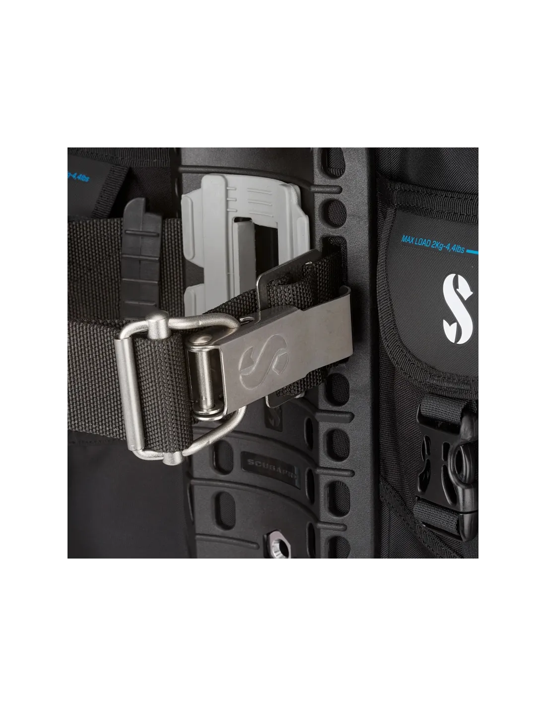 - Bolsos de trim integrados, cada um com capacidade até 2 kg (4,4 lbs), para melhor equilíbrio em mergulho.
