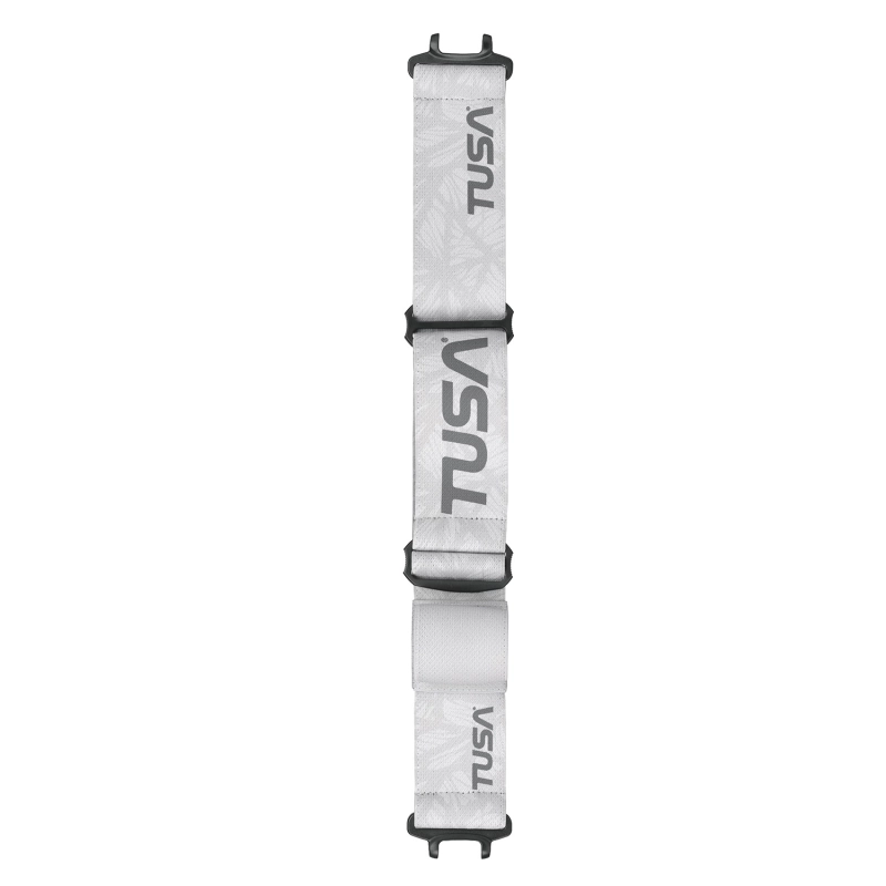 A precinta em tecido para máscara acrescenta um novo nível de conforto à experiência de mergulho. O sistema antiderrapante e o ajuste fácil garantem um encaixe seguro na parte de trás da cabeça. O suporte do snorkel assegura uma fixação firme.