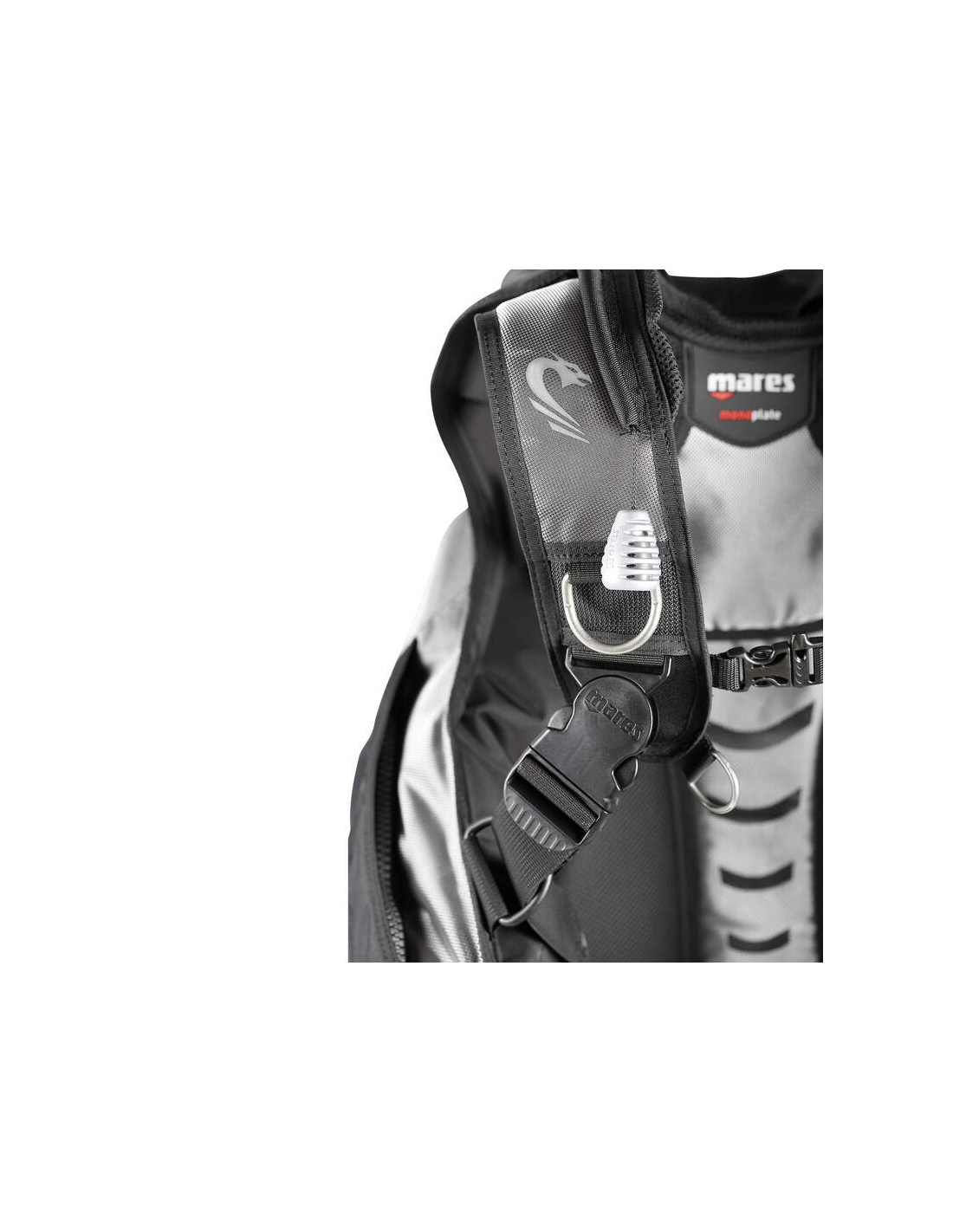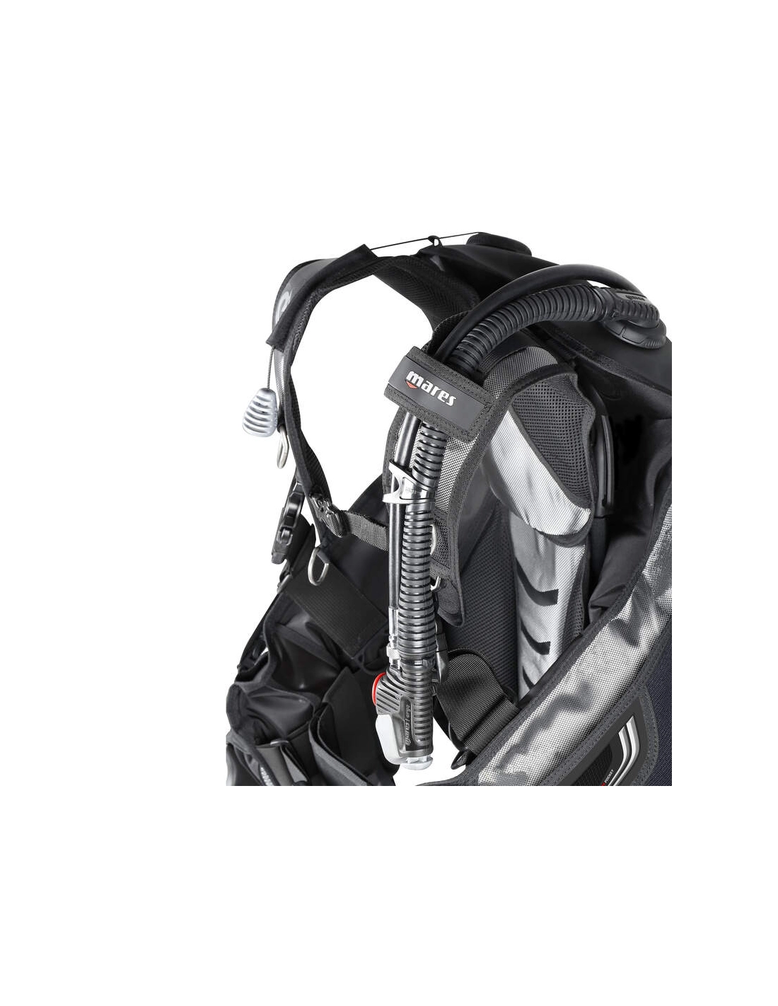 O ajuste é excelente e o desempenho é melhorado pela separação entre a bolsa e as alças. Isto permite maior liberdade de movimentos e maior estabilidade da bolsa, mesmo durante ajustes ao longo do mergulho. A bolsa está ligada à alça de ombro por uma fivela que desliza numa precinta, garantindo que não há tração nos ombros durante a insuflação.